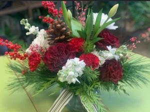 Christmas in a bouquet!! Send something that shows your Christmas spirit. Beautiful and unique. Substitutions may be made based on floral availability